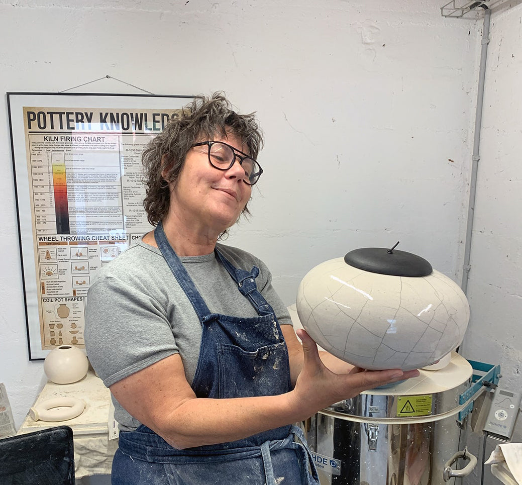 Mon inspiration puise dans mon éducation artistique éclectique. Je suis particulièrement sensible aux formes que je croise - qu'il s'agisse d'œuvres d'art, d’objets aperçus dans une vitrine d’un magasin ou d'éléments naturels comme une graine ou encore une écorce. Ces rencontres visuelles ressurgissent souvent des mois plus tard, transformées par l'émotion et le souvenir. De plus, avec le temps j’ai découvert à quel point la philosophie du wabi-sabi et son acception de l'imperfection s’accordait naturellement avec le lâcher-prise nécessaire pour apprécier de travailler le raku. Face aux retours de plus en plus encourageants lors d'expositions et de salons, j'ai finalement choisi de me consacrer entièrement à cet art.
