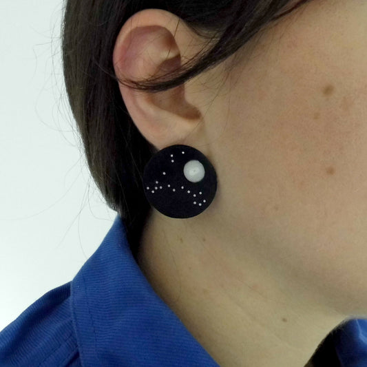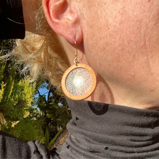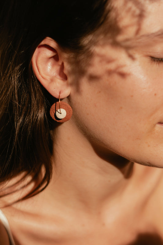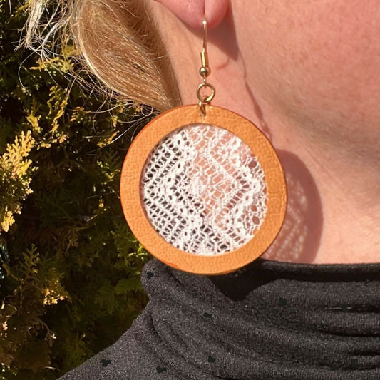 Boucles d'oreilles dormeuses Maxi Rotondes Cuir et Dentelle