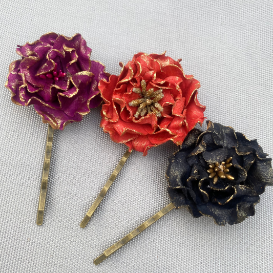 Boucles d'oreilles dormeuses Gold Teacup Roses en cuir