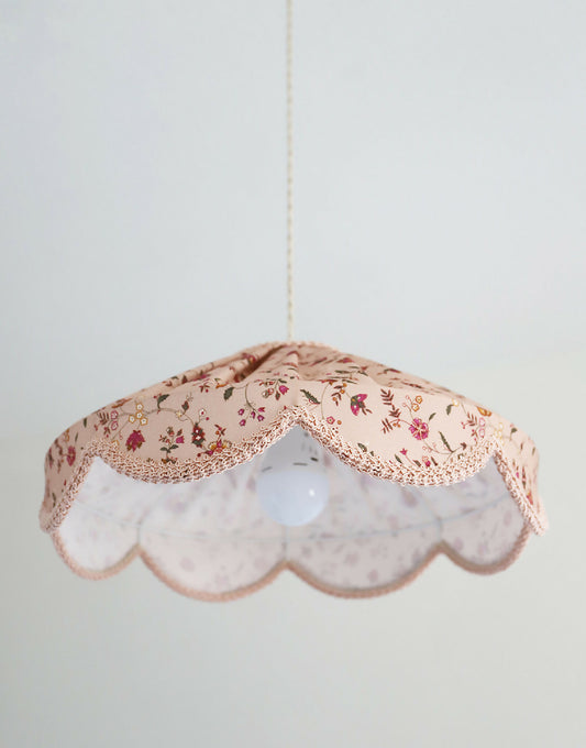 Suspension "Cosette" en Tissu Floral Mille Fleurs - Abat-jour Festonné Style Vintage Made in France
