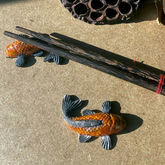 Paire de porte couteau en céramique - carpe koï orange et noir.