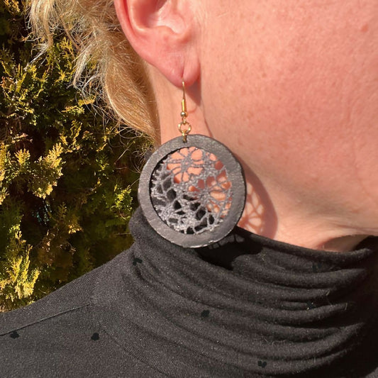 Boucles d'oreilles dormeuses Maxi Black Rotondes Cuir et Dentelle
