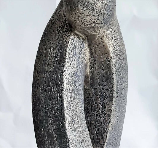 Sculpture contemporaine femme en argile sur socle métal "Insouciance"
