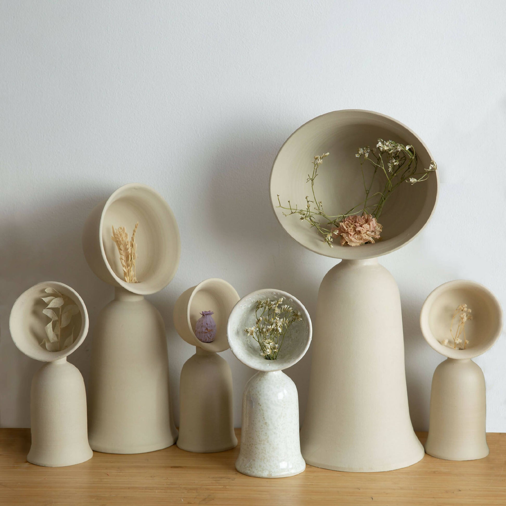 These soliflore vases are entirely turned by hand. The hollow foot has been specially designed to accommodate water, allowing fresh or dried flowers to be placed there, creating magnificent floral arrangements. Available in glazed or raw earthenware version and in three different sizes.