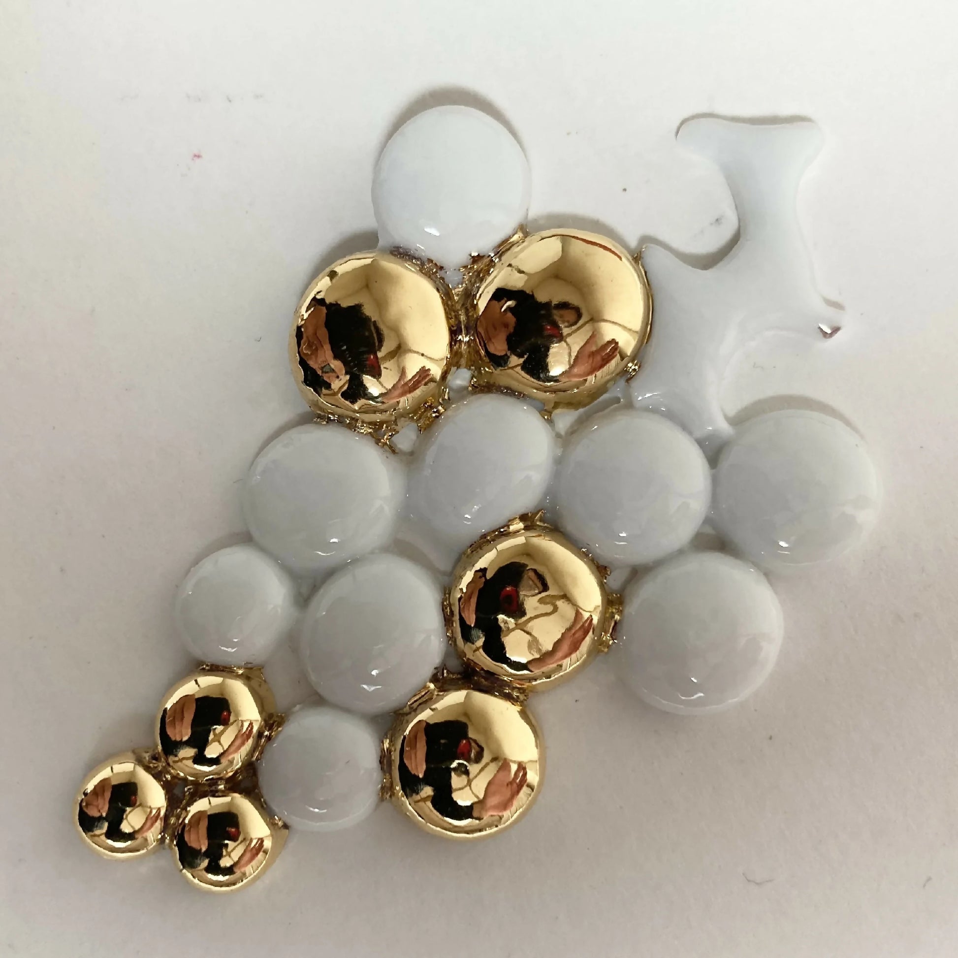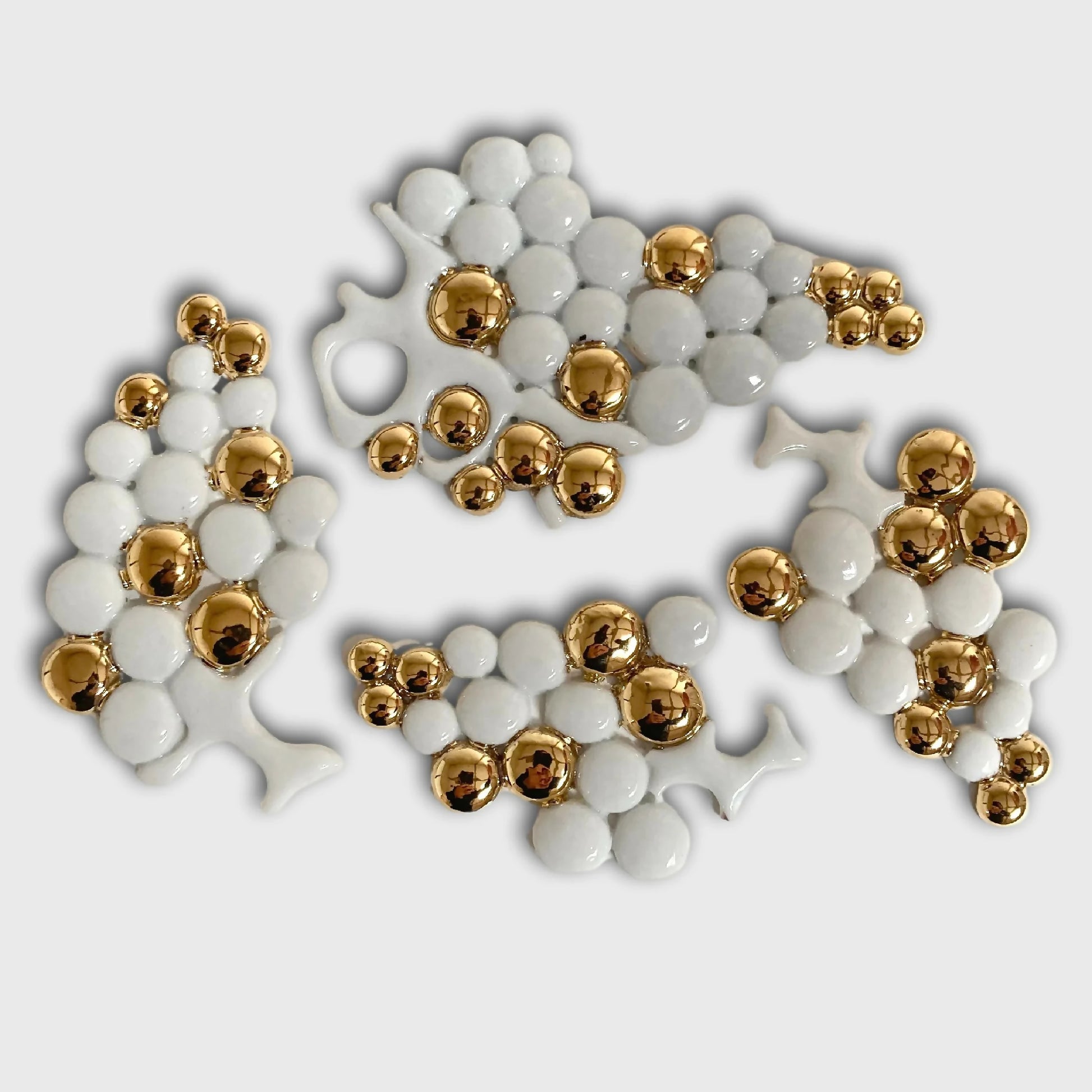 Décor de table, 4 grappes de raisins en porcelaine émaillée blanc et or. Parfait pour les tables de fêtes.