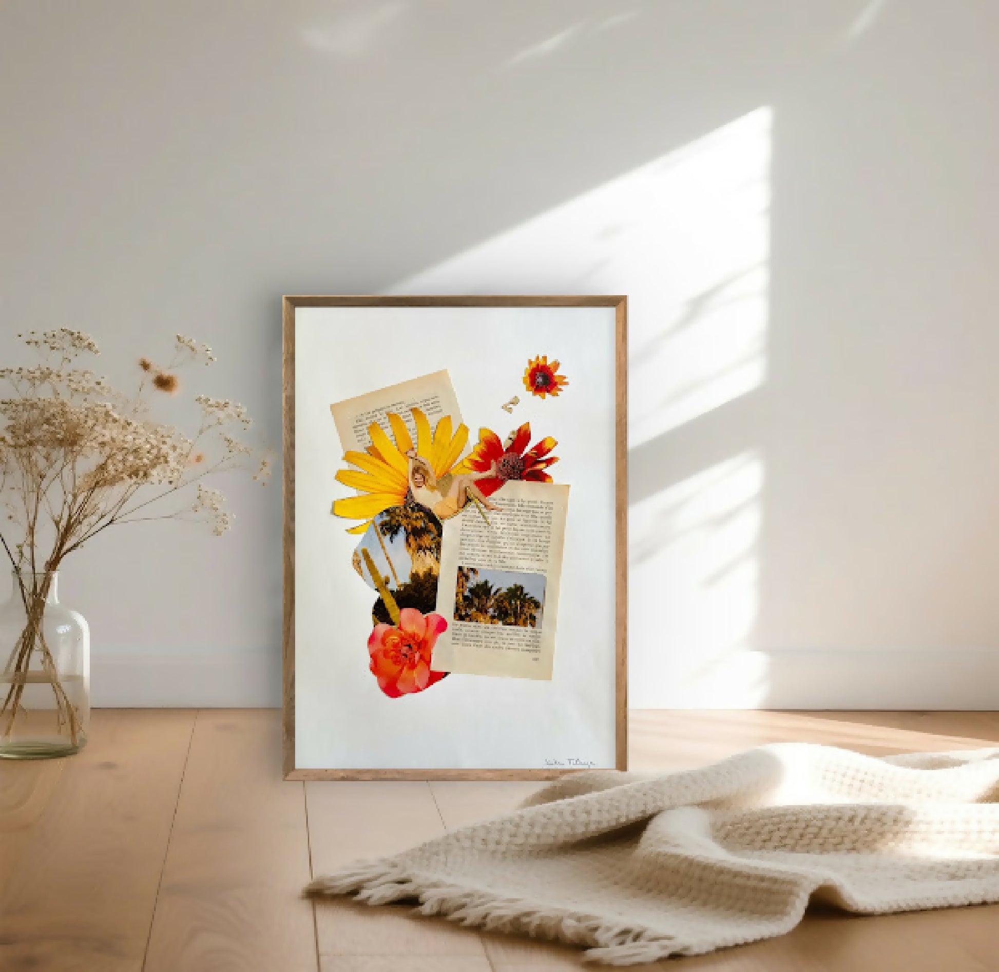 Ce collage est inspiré de vacances en Italie sur les chemins de la toscane. Il respire le soleil, la dolce vita, les petites rues pavées, la cuisine, les cyprès et les routes vallonnées de la toscane. Une oeuvre comme une invitation aux voyages.