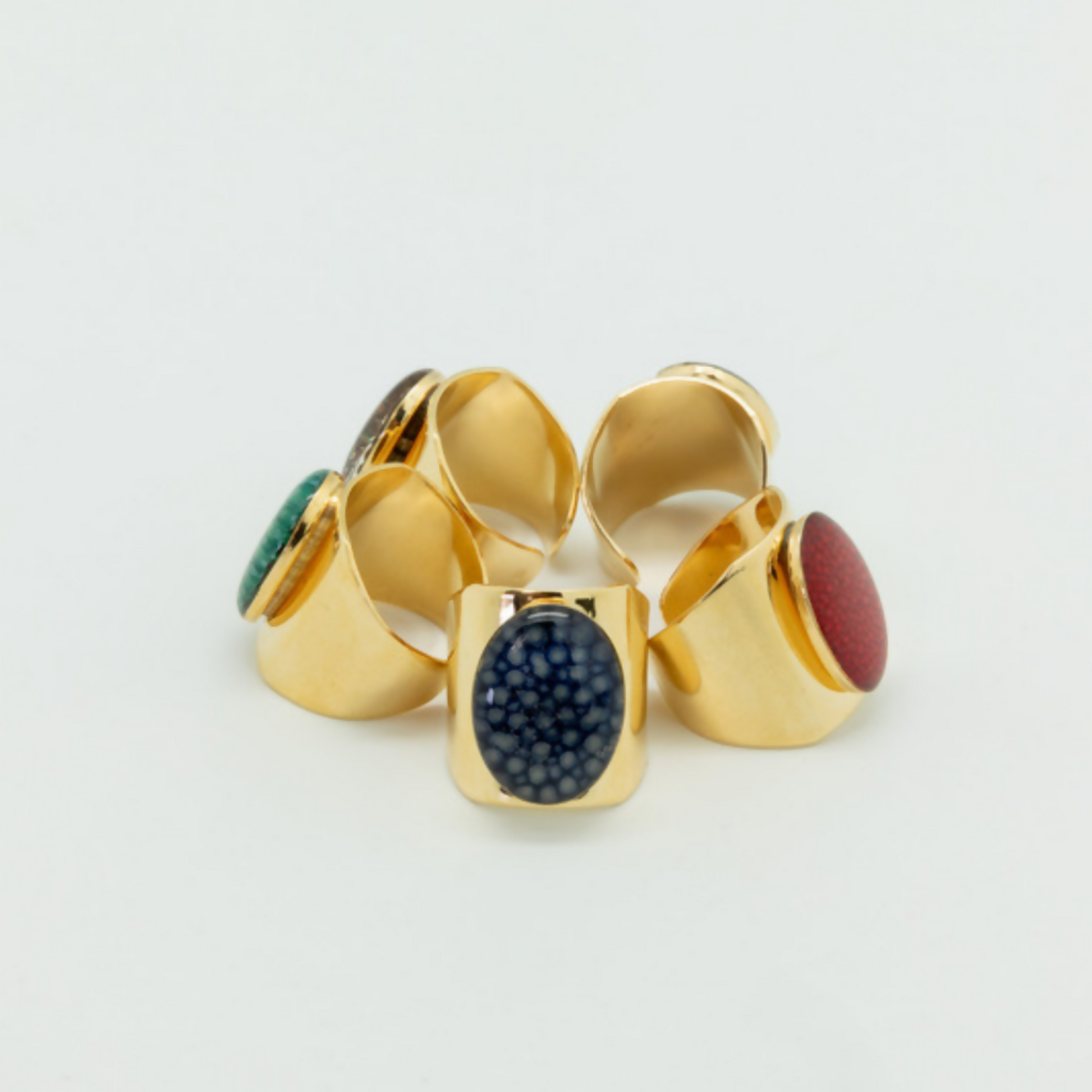 Notre bague style chevalière Gold Cocotte de la collection Galuchat s'accordera avec toutes vos tenues en toutes occasions.