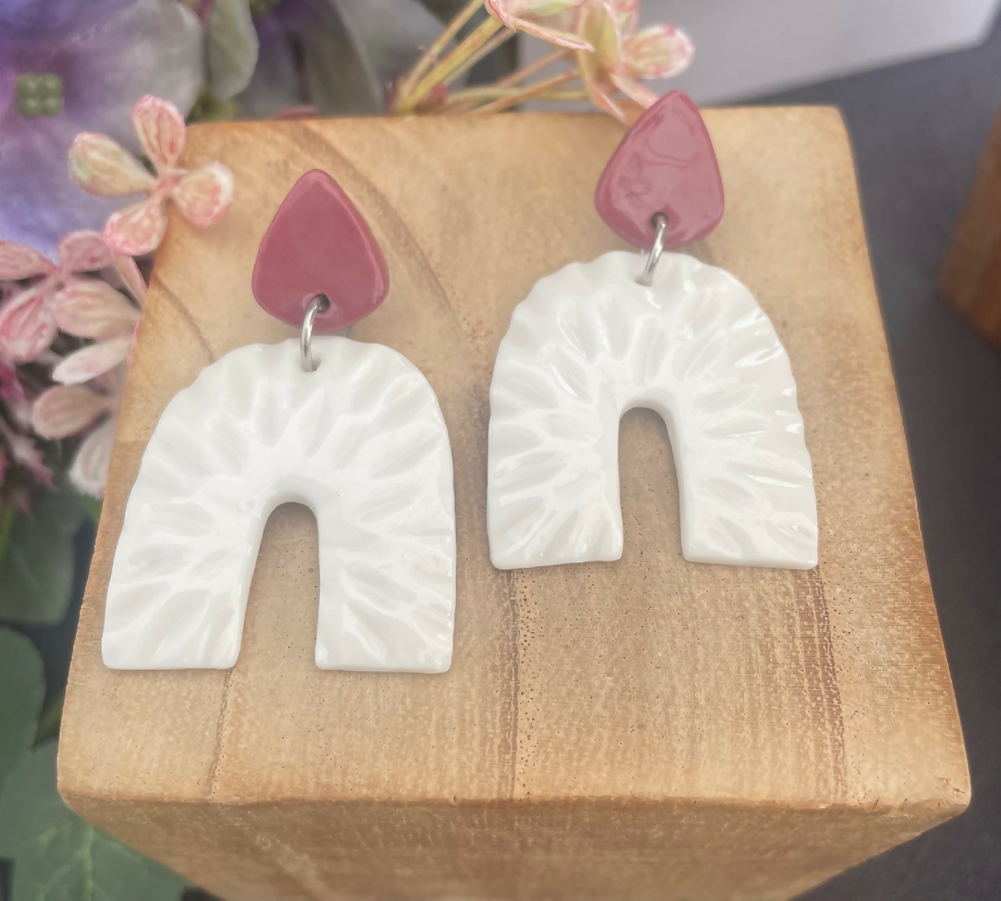 Artiste bijoutière française. Bijou artisanal. Bijou fait-main. Boucles d'oreilles artisanales. Travail artisanal. Artisanat français, local. Boucles d'oreilles en céramique, féminines et naturelles. Matières nobles et naturelles. Bijou en céramique, bijou en terre cuite, bijou en porcelaine, bijou artisanal, boucle d'oreille artisanale, boucle d'oreille en céramique.