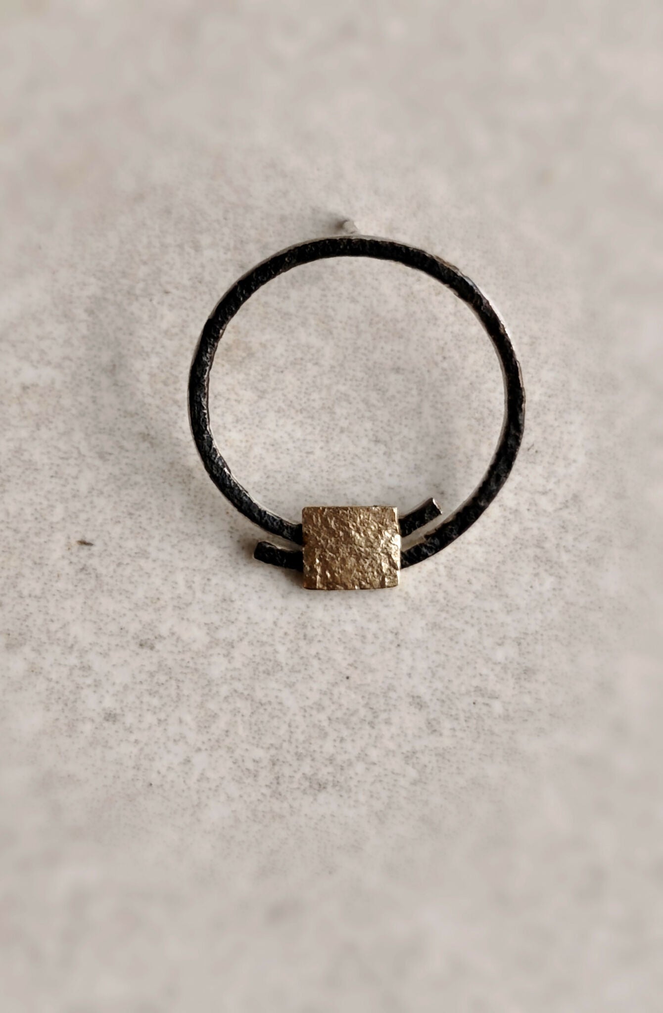Un carré en or 375, délicatement texturé, posé comme un point d’équilibre.