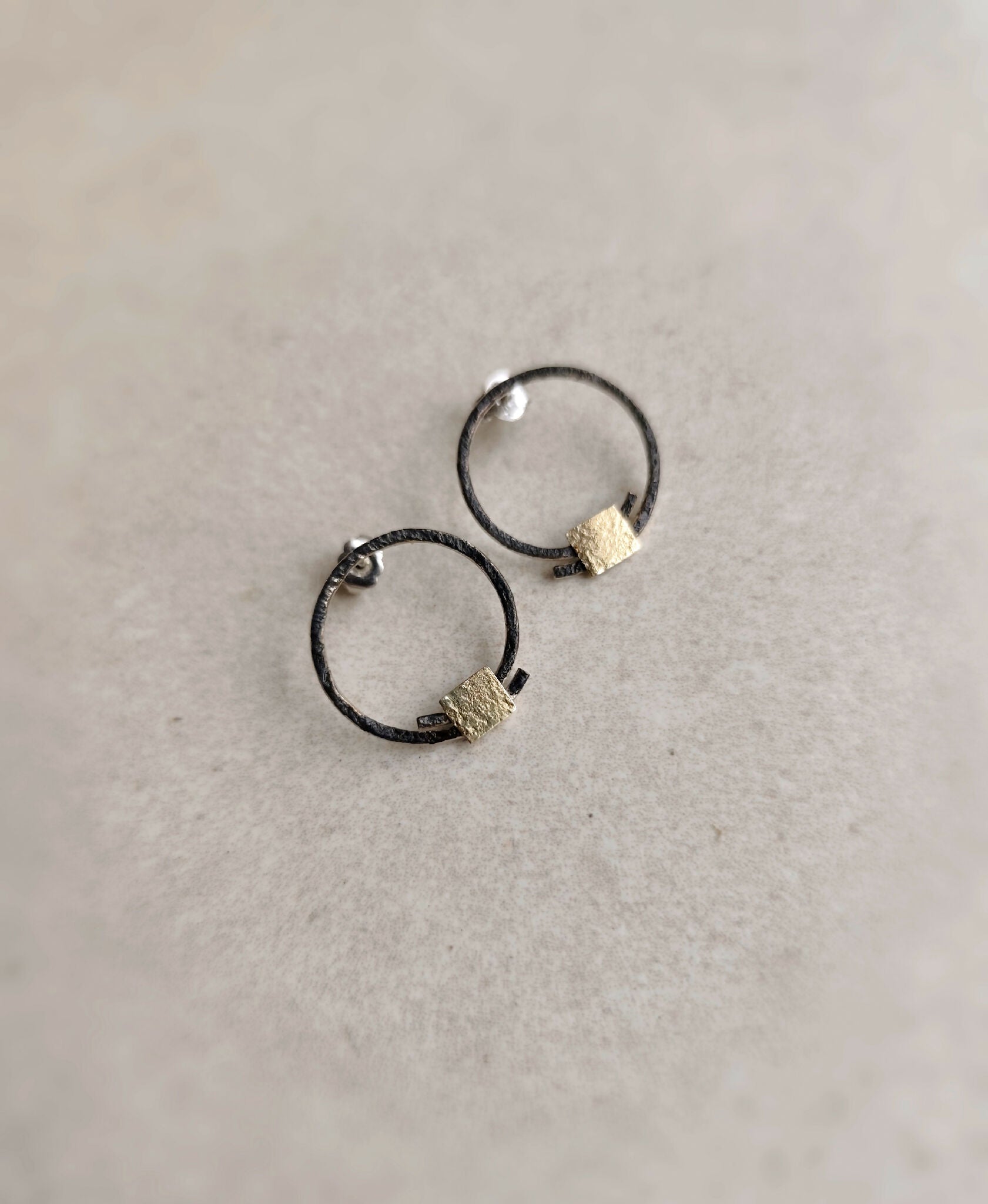 Ces boucles d’oreilles jouent sur le contraste des formes et des matières :