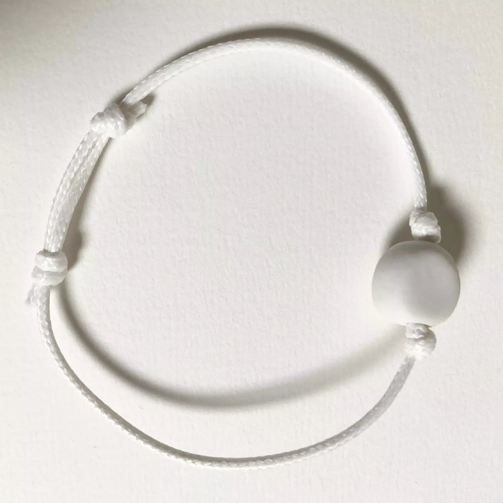 Fil diamètre 2 mm. Bracelet réglable par 2 noeuds capucins. Perle de 1 cm