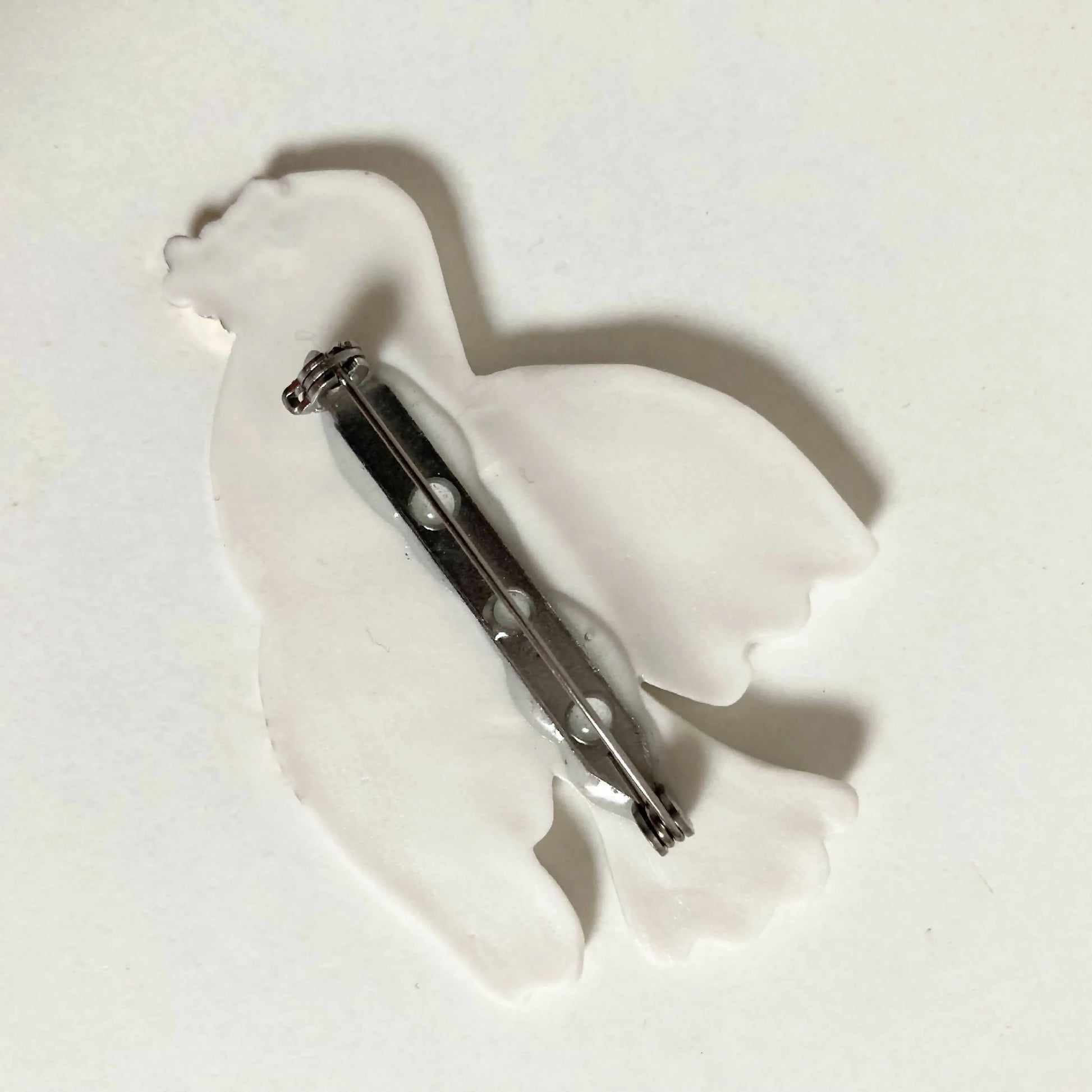 Broche "Colombe au rameau d'olivier" en porcelaine et or. Petite série réalisée intégralement dans mon atelier. Fermoir en métal inox.