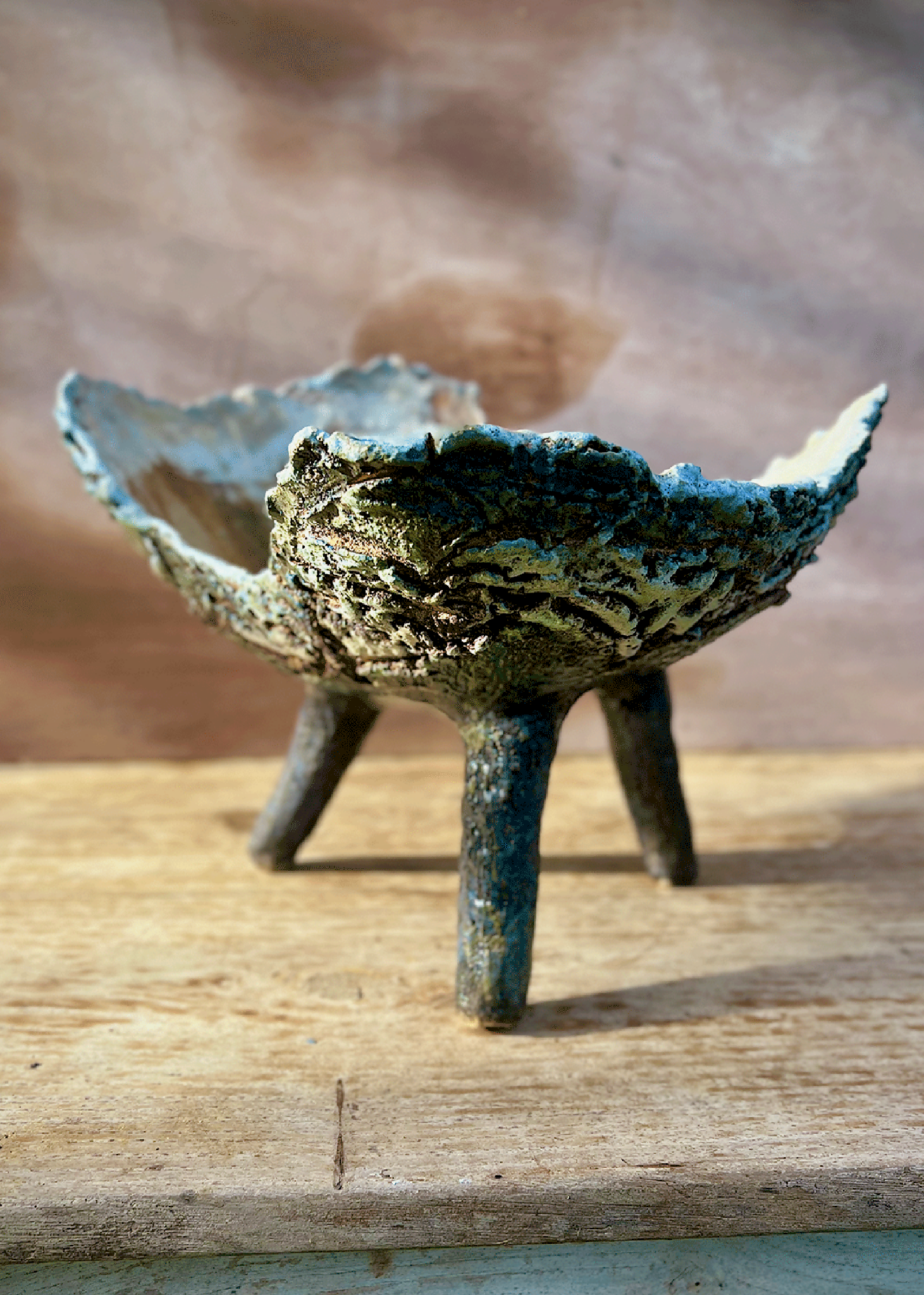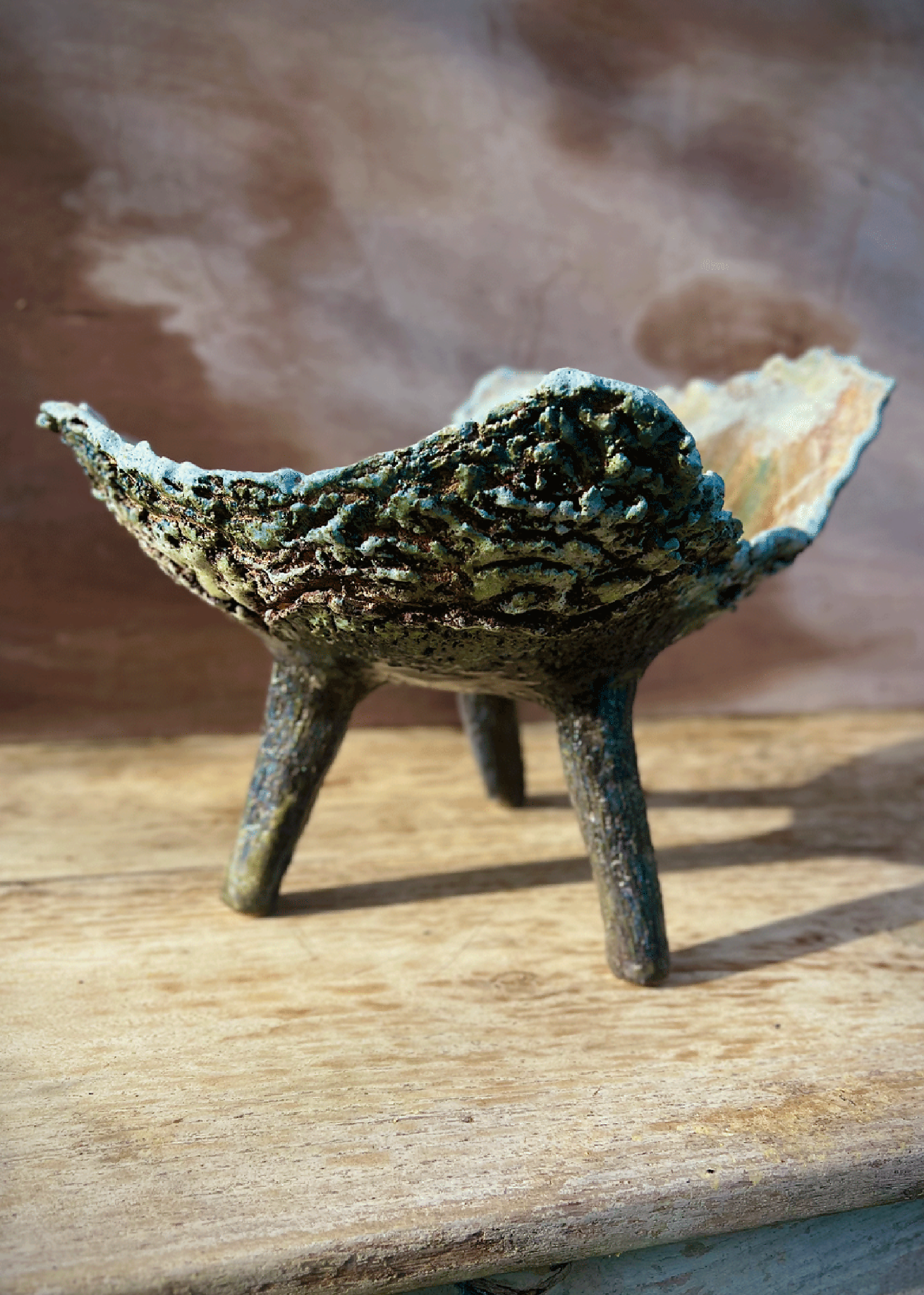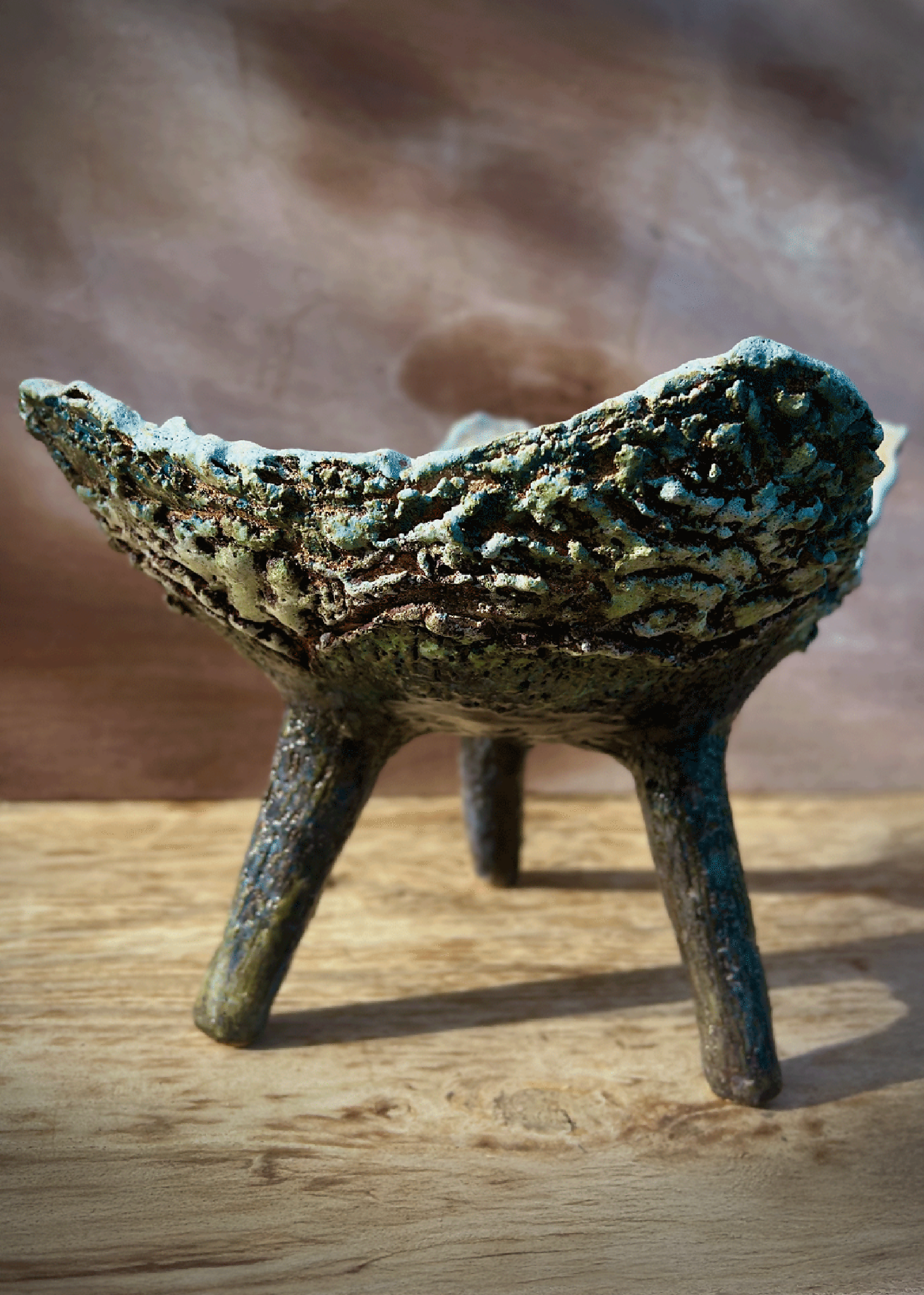 Coupe tripode en grès artisanal – Pièce unique façonnée à Sète