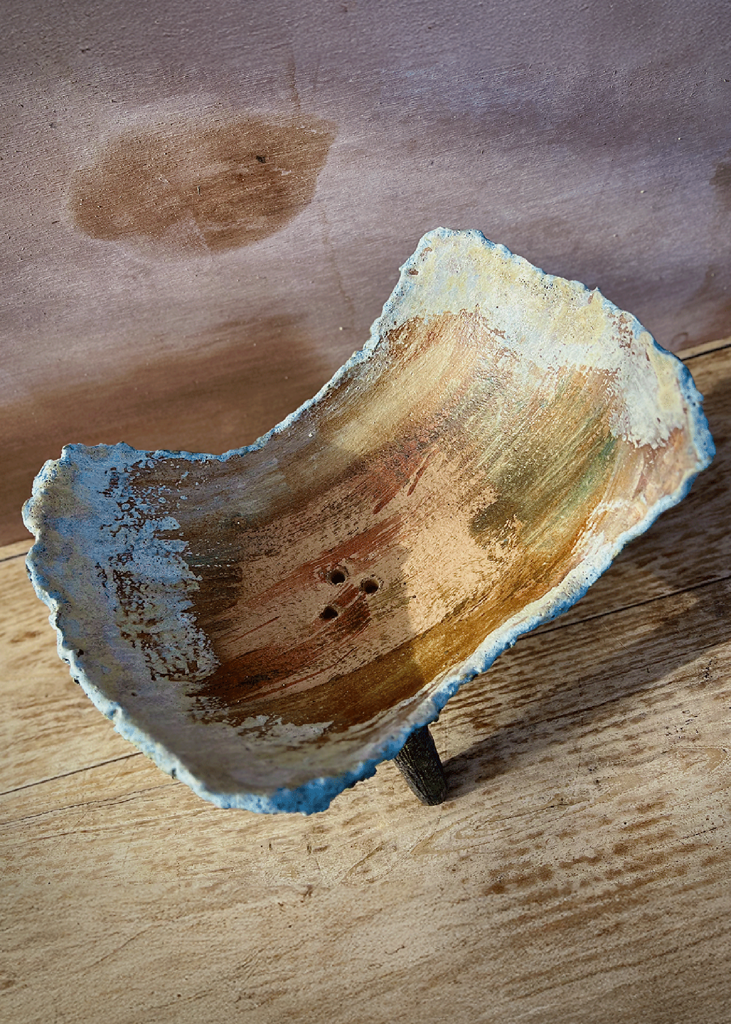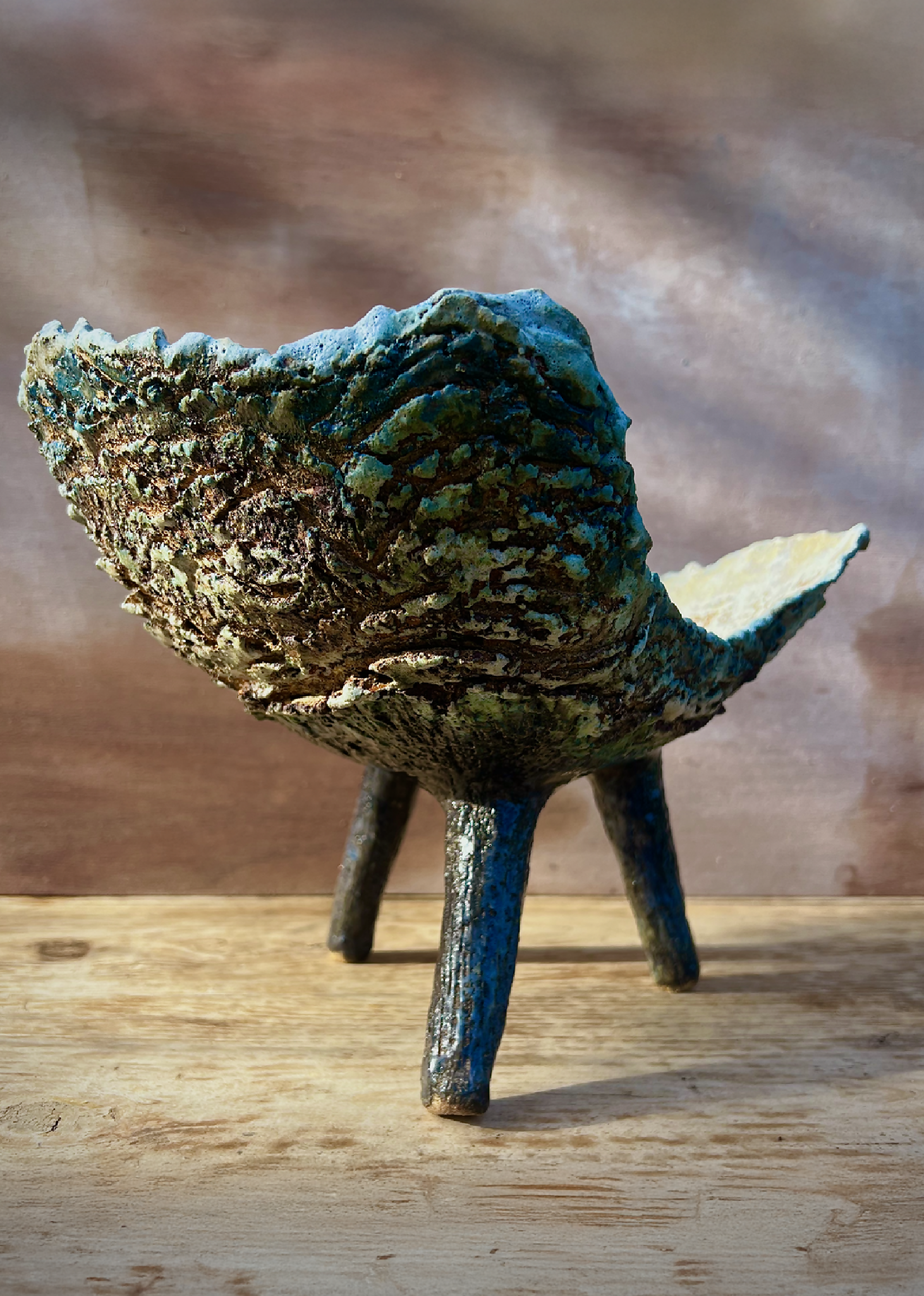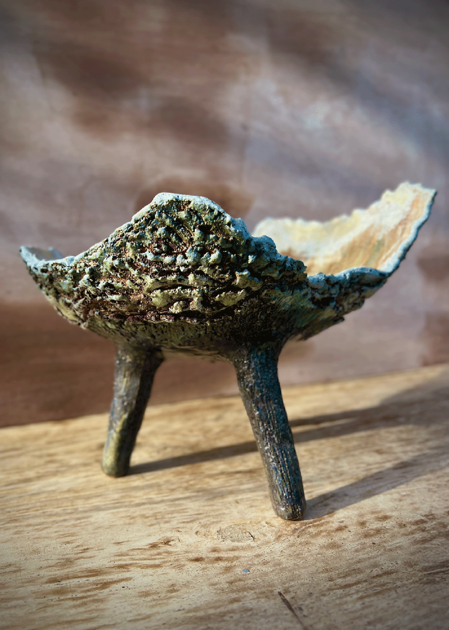 Coupe tripode en grès artisanal – Pièce unique façonnée à Sète