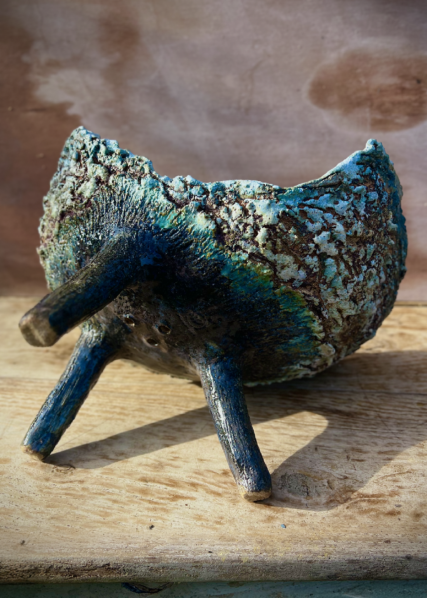 Découvrez cette magnifique coupe tripode en grès, entièrement façonnée et émaillée à la main dans mon atelier de Sète, dans le sud de la France. Véritable pièce unique, elle s'adapte à tous vos usages : coupe à fruits élégante, jardinière d'intérieur raffinée ou vasque d'extérieur pour sublimer vos espaces.