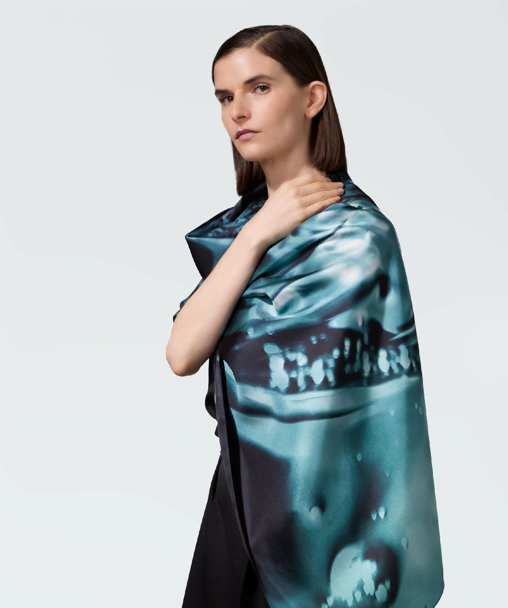 Design textile, Designer française, impression en France sur écharpe ou foulard en twill de soie, 100%. Mode femme, mode mixte. Artisanat du textile. Foulard en soie