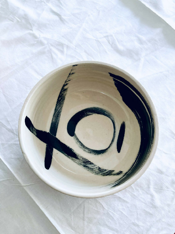 Bol à salade en grès tourné, peint avec de l'engobe noir, puis émaillé
