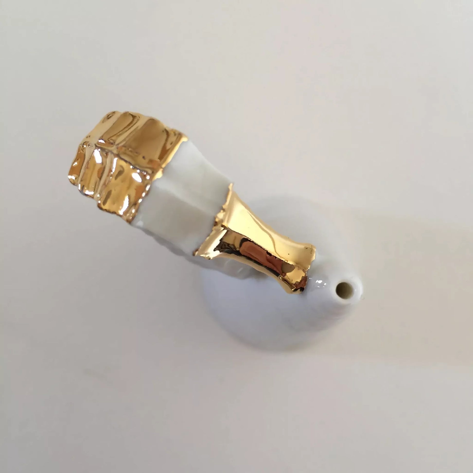 Sel Poivre Homard et Hippocampe en porcelaine et or. Décor de table à la matière scintillante d'émail et de porcelaine. Bouchon souple sous la pièce. Chaque pièce est unique, signée, et intégralement réalisée par l'artiste dans son atelier.