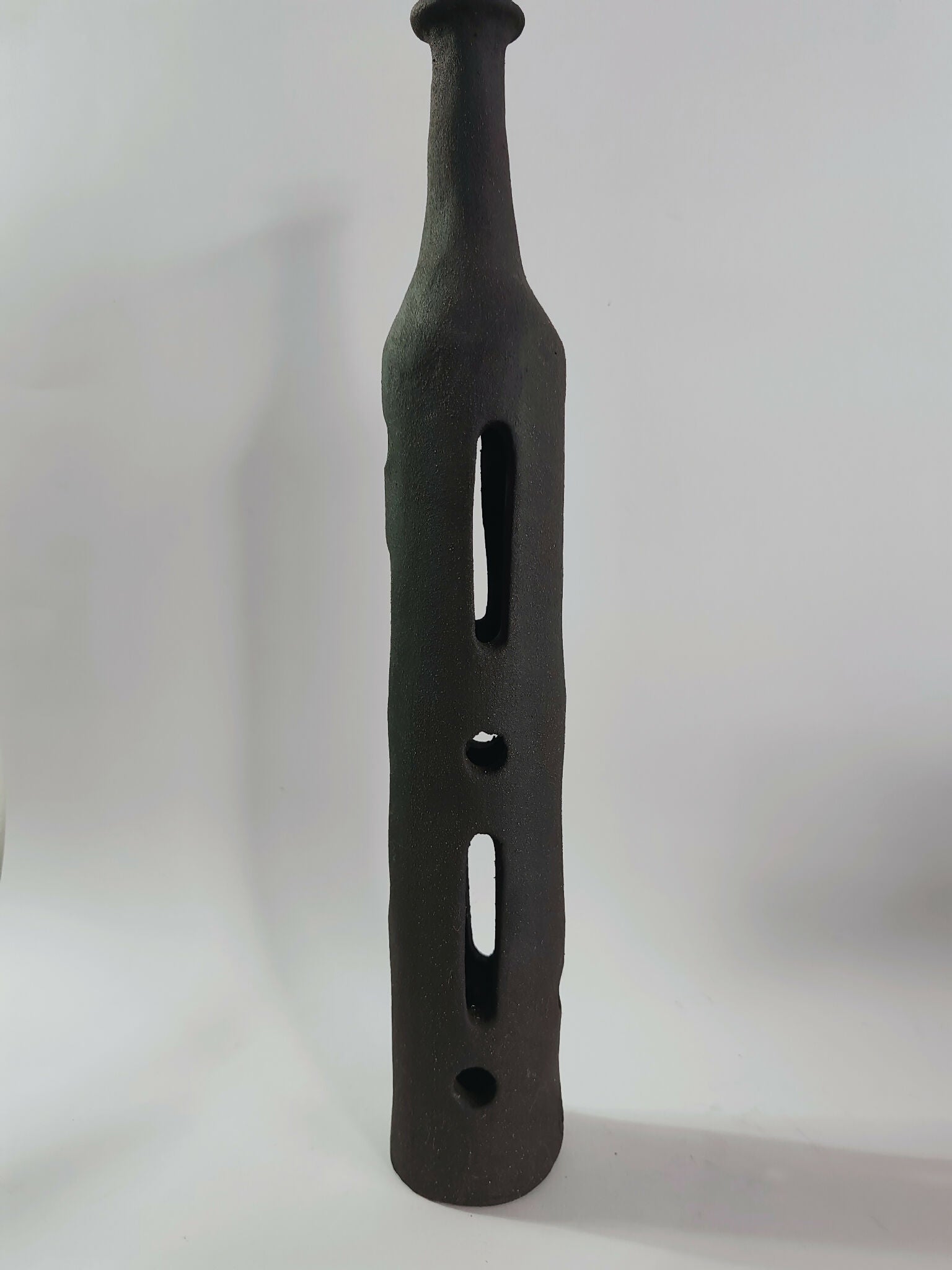 Vase haut et fin, ajouré, laissant passer la lumière.