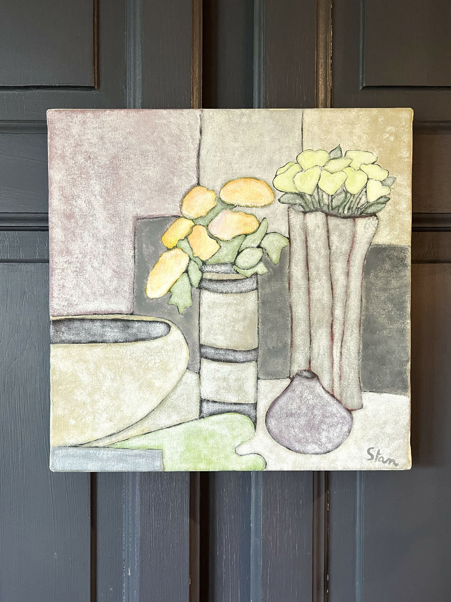 Grâce à mes formations en arts plastiques et en histoire de l’art, j’ai toujours été encouragée à expérimenter différents supports artistiques. Si la céramique occupe désormais une place prépondérante dans ma vie d’artiste, la peinture demeure une source de plaisir et d’expression pour moi.