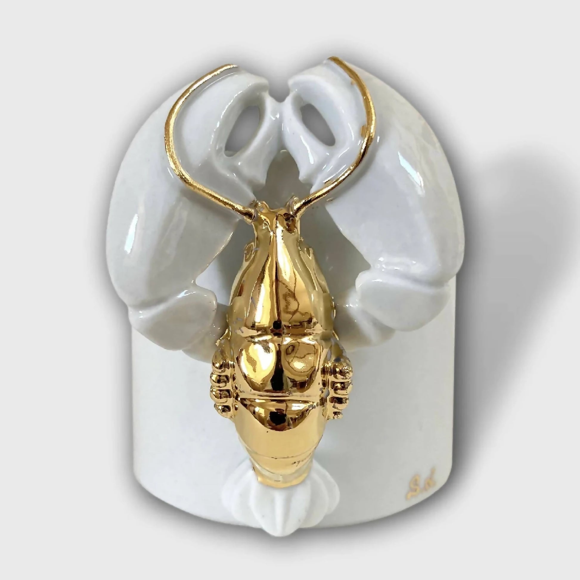 Tasse homard droit en porcelaine émaillée blanc décorée à l'or fin.