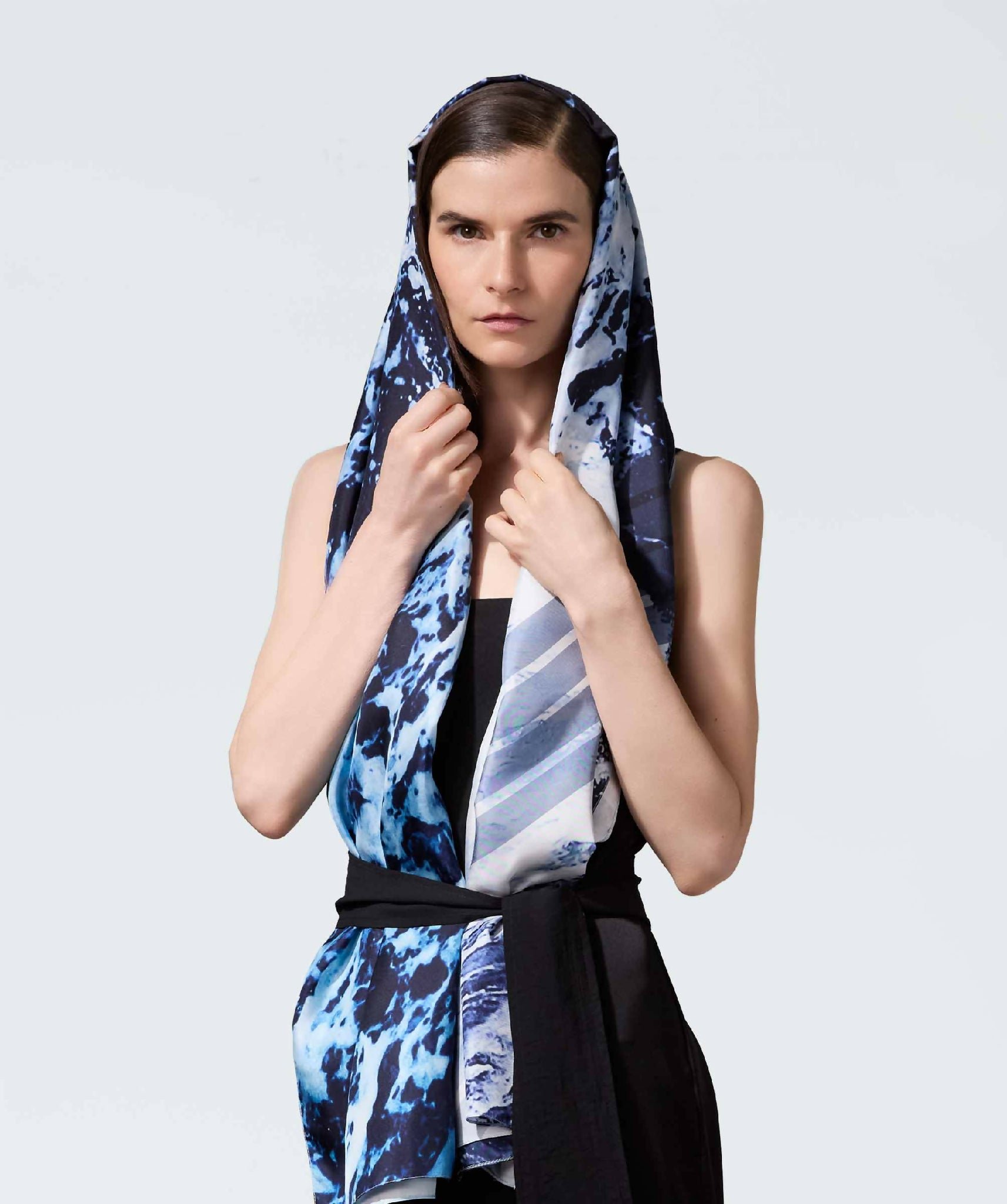 Design textile, Designer française, impression en France sur écharpe ou foulard en twill de soie, 100%. Mode femme, mode mixte. Artisanat du textile. Foulard en soie